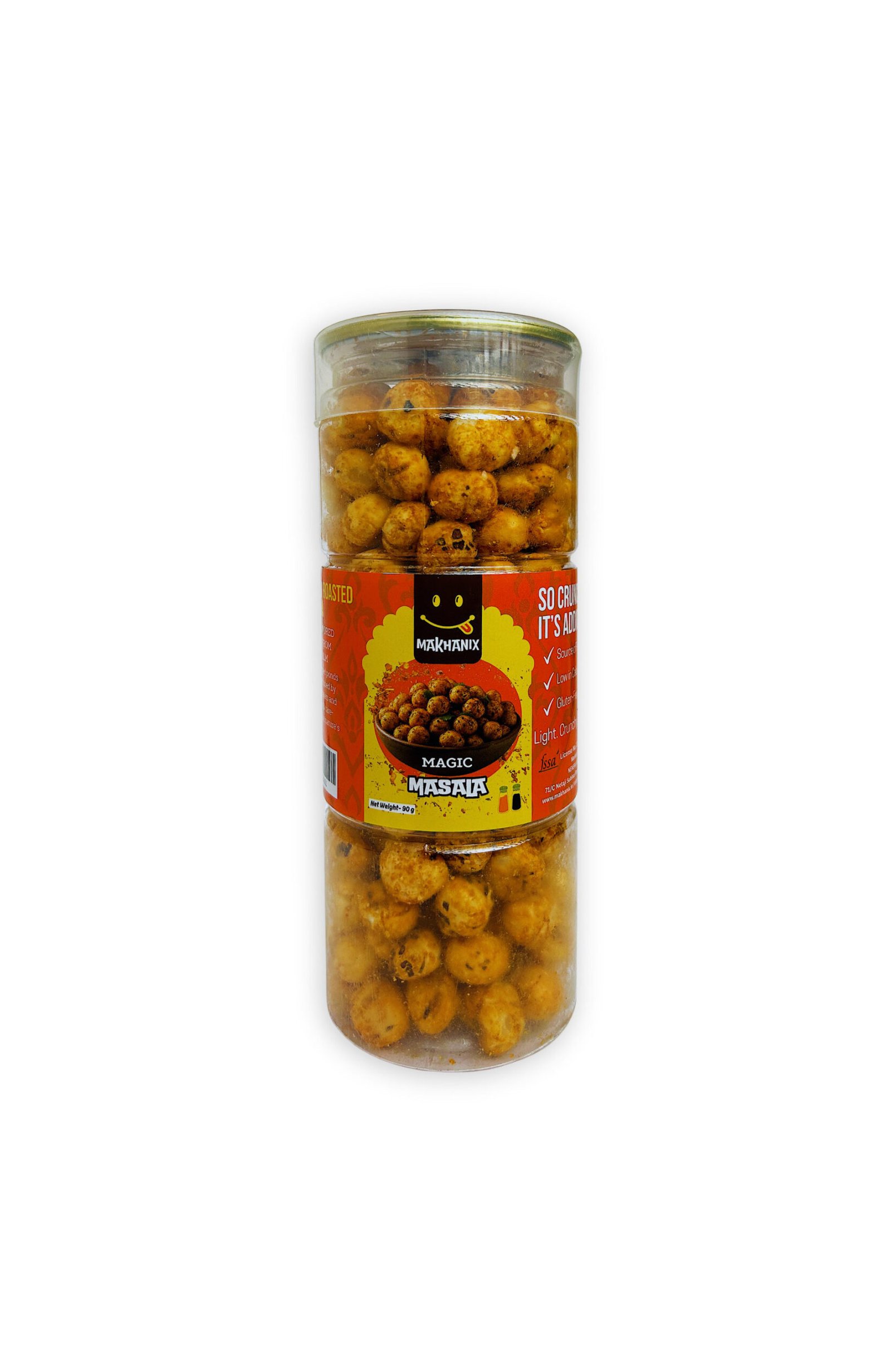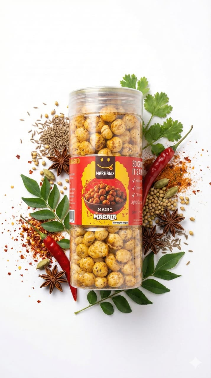 Magic Masala Makhana is a bold and flavourful roasted snack made from premium fox nuts, coated with a rich blend of Indian masala spices. Crunchy, gluten-free and low in calories, it’s a perfect guilt-free alternative to fried namkeens.