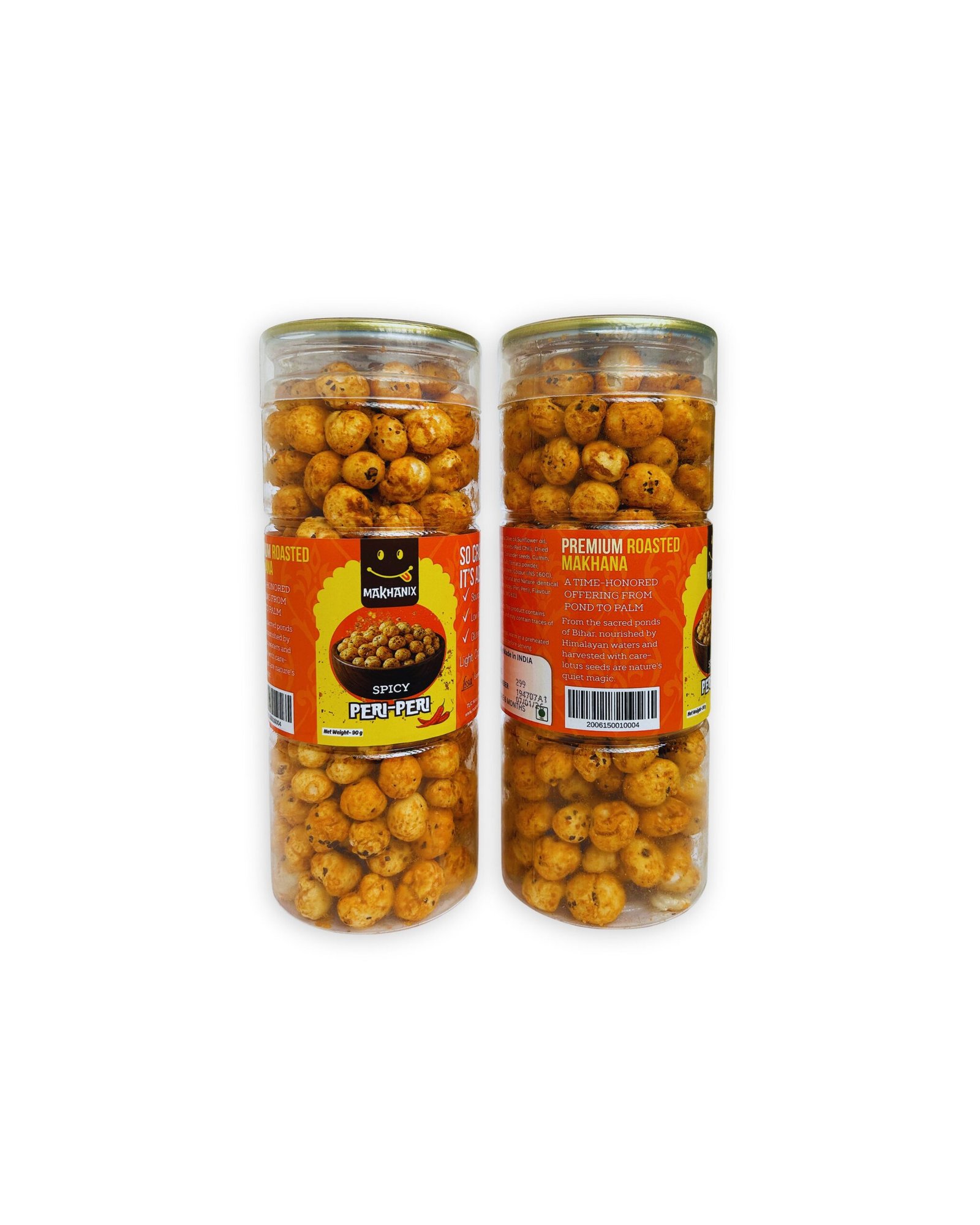 Turn up the heat with Makhanix Peri Peri Makhana, a perfectly roasted snack crafted for spice lovers. Made using high-quality lotus seeds sourced from Bihar, our makhana is carefully roasted—not fried—to deliver a light, crunchy texture with intense peri peri flavour in every bite.